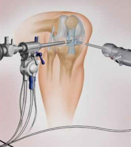 Артроскопией называют минимальную инвазивную манипуляцию, применяемую в целях диагностики или лечения пораженных суставообразующих поверхностей. Ее преимущества перед традиционной хирургией заключаются в том, что нет необходимости в полном открытии сустава, и существенно сокращаются срок пребывания в больнице и реабилитационный период. Обычно на месте поврежденного органа делается два или три маленьких надреза для введения инструментов. Остающиеся после рубцы небольшие и малозаметны.